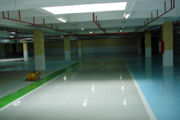 地下停車場環(huán)氧地坪是通過施工環(huán)氧樹脂地坪漆,達到防水、防潮、防塵的效果,并通過現(xiàn)代化調色技術,使停車